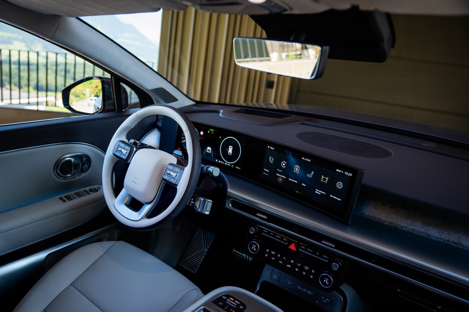 En matière de numérisation, l'Ioniq 9 propose le nouvel assistant nHyundai AI, basé sur la technologie GPT, qui permet une commande vocale naturelle pour la navigation, l'intégration du calendrier et les fonctions du véhicule. L'écran panoramique comprend deux écrans de 12,3 pouces chacun.