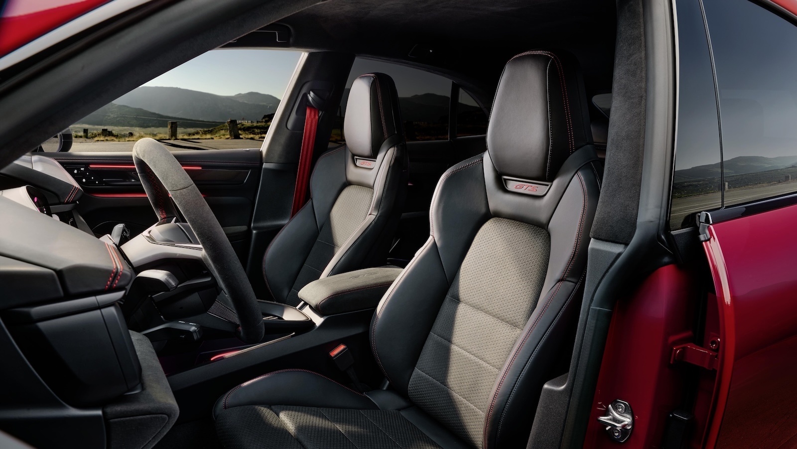 La Macan Electric offre désormais la possibilité, grâce au pack intérieur GTS disponible en option, d'harmoniser les couleurs de l'extérieur et de l'intérieur. Assorti aux peintures extérieures correspondantes, le pack intérieur GTS est disponible au choix en rouge carmin, gris ardoise néo et bleu lugano. Les coutures décoratives sur les sièges, le volant, les panneaux de porte et la partie supérieure du tableau de bord sont alors réalisées dans la couleur correspondante, tout comme les ceintures de sécurité et les inscriptions «GTS» sur les sièges.