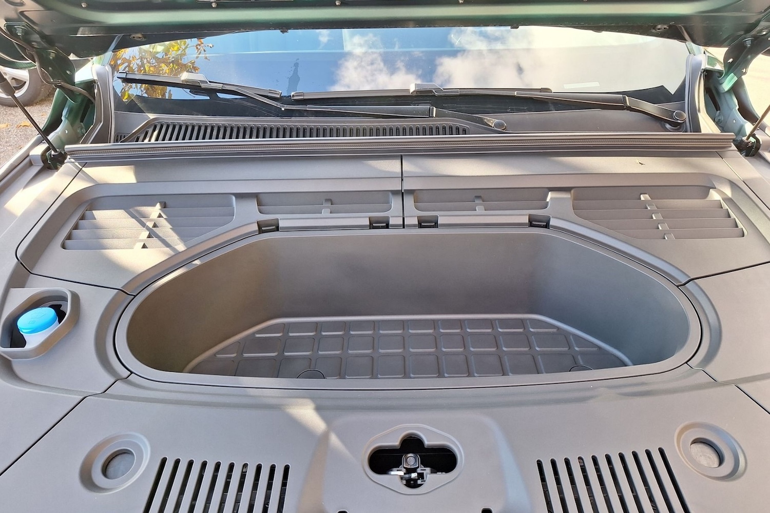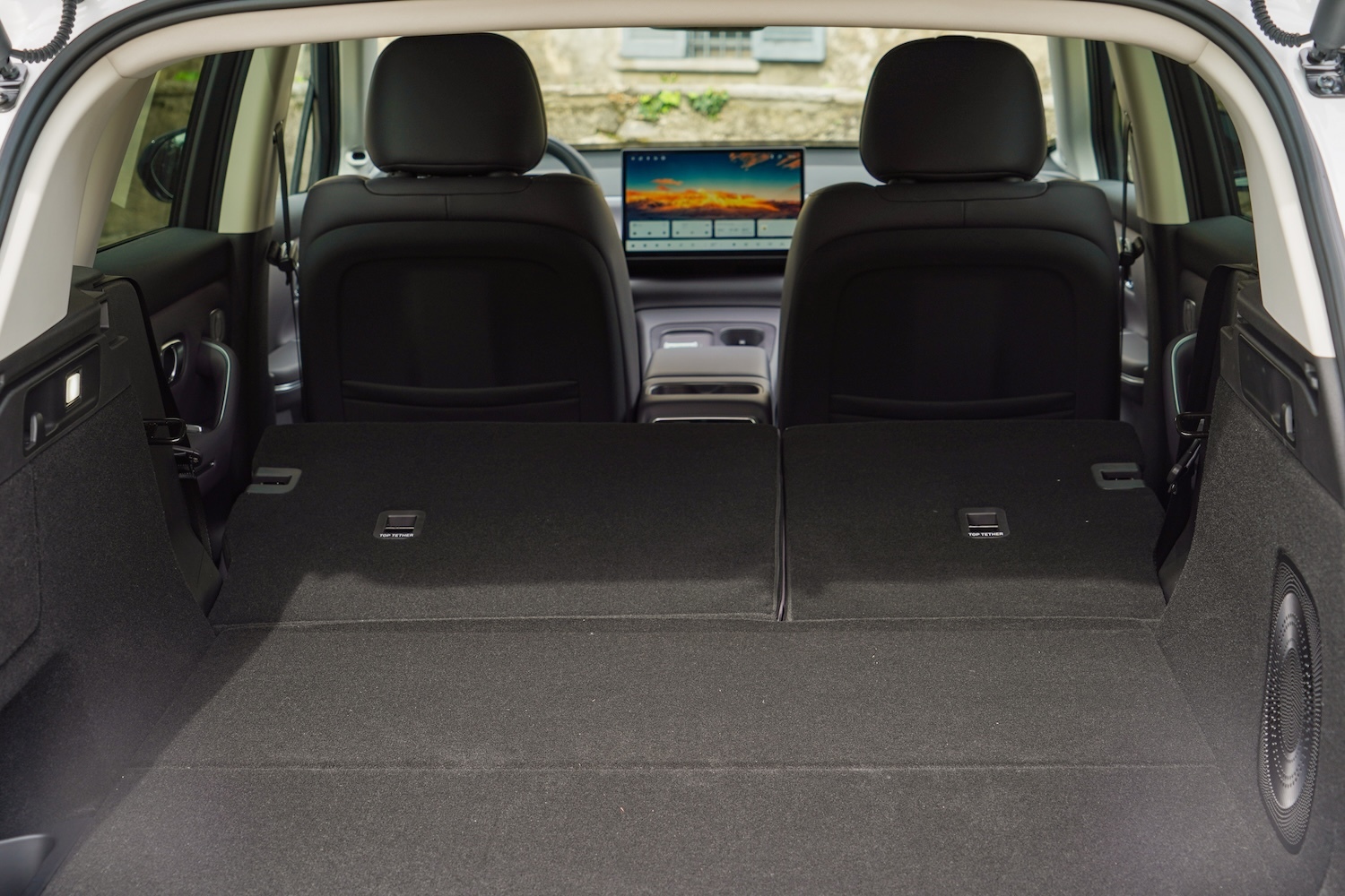 Il n'y a rien à redire sur l'apparence du SUV, certaines de ses lignes, courbes et arêtes pourraient également orner un modèle SUV de Zuffenhausen. À l'intérieur, un grand écran tactile et un instrument central numérique compact rappellent un peu Tesla, mais on peut s'en accommoder. Il n'y a pas non plus de critiques notables à formuler concernant le choix des matériaux à l'intérieur, l'espace disponible pour les passagers et le volume du coffre (435 à 1410 litres). Sous le capot avant se trouve un petit coffre avant, par exemple pour le câble de recharge.
